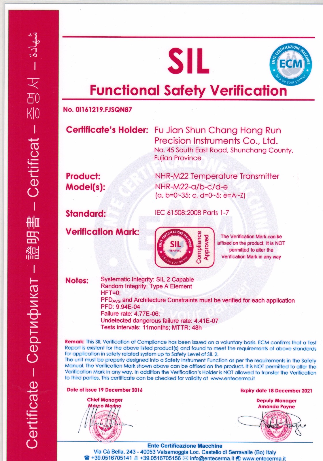 近日,虹潤智能儀表系列產(chǎn)品再傳喜訊,虹潤兩款智能儀表產(chǎn)品NHR-M22溫度變送器、NHR-M23配電器獲得了國際SIL2功能安全認證證書。這標志著虹潤儀表產(chǎn)品的安全性達到了國際標準。也為虹潤產(chǎn)品實現(xiàn)走向世界的美好愿景再一次打下了堅實的硬件基礎。