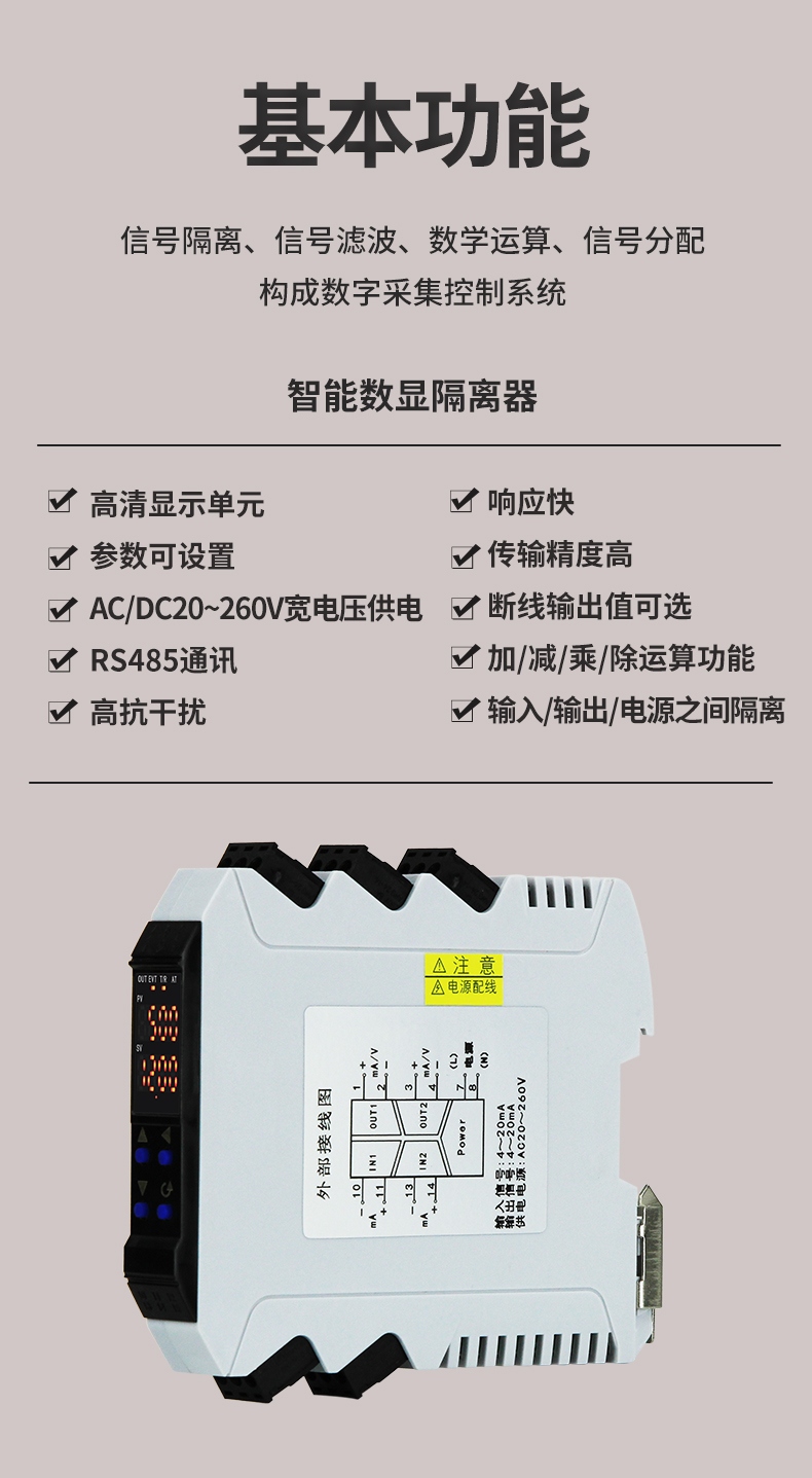 虹潤(rùn)公司是專業(yè)生產(chǎn)隔離器的國(guó)家專精特新“小巨人”企業(yè)。生產(chǎn)的導(dǎo)軌式智能隔離器 ,具有高清顯示單元,參數(shù)可設(shè)置,寬電源供電,響應(yīng)快,帶RS485通訊等特點(diǎn)。產(chǎn)品獲得信號(hào)隔離器、一種二端子模塊、無源信號(hào)隔離器等3項(xiàng)國(guó)家發(fā)明專利,主持起草現(xiàn)場(chǎng)設(shè)備工具(FDT)接口規(guī)范、工業(yè)過程測(cè)量和控制系統(tǒng)用隔離式安全柵、工業(yè)過程測(cè)量和控制系統(tǒng)用配電器等3項(xiàng)國(guó)家標(biāo)準(zhǔn),以及通信系統(tǒng)多通道數(shù)據(jù)采集控制終端規(guī)范軍用標(biāo)準(zhǔn),參與國(guó)際5G標(biāo)準(zhǔn)制定,取得智能隔離器等2項(xiàng)相關(guān)軟件著作權(quán)。產(chǎn)品廣泛應(yīng)用于電力、石化,冶金、制藥、水處理、機(jī)械配套等各種工業(yè)現(xiàn)場(chǎng)。