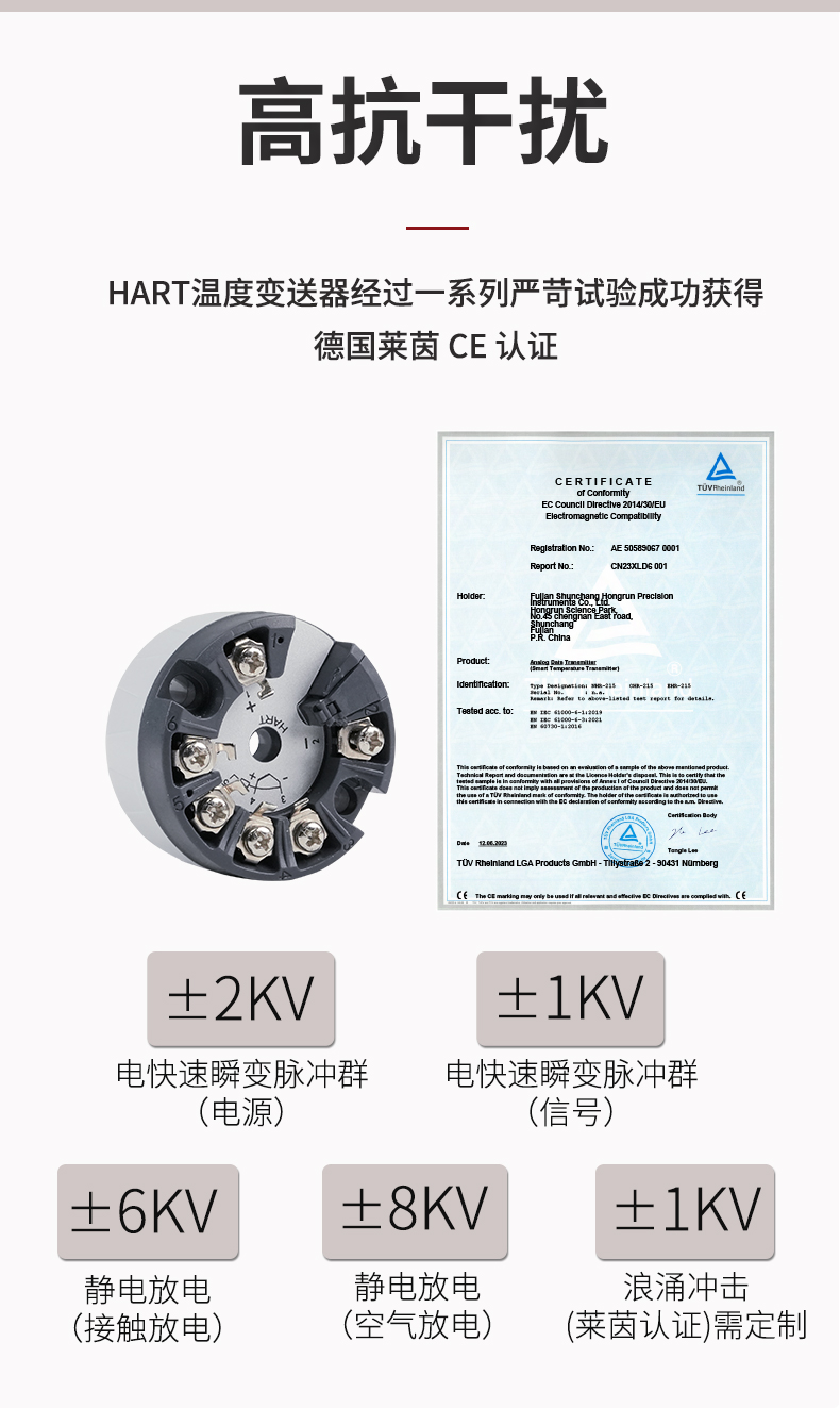 虹潤公司是專業(yè)生產(chǎn)溫度變送器的國家專精特新“小巨人”企業(yè)。生產(chǎn)的智能溫度變送器,具有適配各類溫度傳感器,精度高,穩(wěn)定性好,通過編程線修改輸入信號類型及量程,高抗干擾等特點(diǎn)。該產(chǎn)品不僅通過HART基金會認(rèn)證、德國萊茵 CE 認(rèn)證與 SIL 功能安全認(rèn)證,還獲得具備減震抗干擾能力的溫度變送器、信號隔離器、一種二端子模塊、無源信號隔離器等4項國家發(fā)明專利,主持起草物聯(lián)網(wǎng)智能溫度儀表、現(xiàn)場設(shè)備工具(FDT)接口規(guī)范、工業(yè)過程測量和控制系統(tǒng)用溫度變送器等3項國家標(biāo)準(zhǔn),以及通信系統(tǒng)多通道數(shù)據(jù)采集控制終端規(guī)范軍用標(biāo)準(zhǔn),參與國際5G標(biāo)準(zhǔn)制定,取得智能溫度變送器、HART溫度變送器等3項相關(guān)軟件著作權(quán)。產(chǎn)品廣泛應(yīng)用于石油、化工、電力、冶金、制藥、食品、水處理等各種工業(yè)領(lǐng)域。