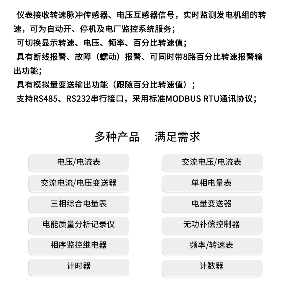虹潤(rùn)公司是專(zhuān)業(yè)生產(chǎn)頻率表的國(guó)家專(zhuān)精特新“小巨人”企業(yè)。生產(chǎn)的電廠(chǎng)專(zhuān)用轉(zhuǎn)速表,具有雙屏LED 數(shù)碼顯示,脈沖/電壓主輔輸入,峰值記憶,支持RS485/RS232通訊等特點(diǎn)。產(chǎn)品獲得基于儀表殼體、一種儀表電源等2項(xiàng)國(guó)家發(fā)明專(zhuān)利,主持起草流程工業(yè)中電氣/儀表和控制系統(tǒng)的試車(chē)國(guó)家標(biāo)準(zhǔn),通信系統(tǒng)多通道數(shù)據(jù)采集控制終端規(guī)范軍用標(biāo)準(zhǔn),以及現(xiàn)場(chǎng)設(shè)備集成等5項(xiàng)智能制造國(guó)家標(biāo)準(zhǔn)。參與國(guó)際5G標(biāo)準(zhǔn)制定,取得頻率轉(zhuǎn)速儀表等2項(xiàng)相關(guān)軟件著作權(quán)。產(chǎn)品廣泛應(yīng)用于電力系統(tǒng)、機(jī)械制造、汽車(chē)工業(yè)、航空航天、船舶海事、冶金礦山等行業(yè)的頻率與轉(zhuǎn)速參數(shù)監(jiān)測(cè)。