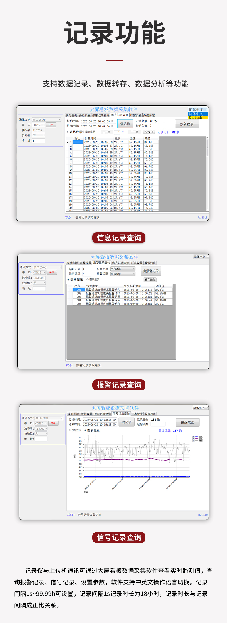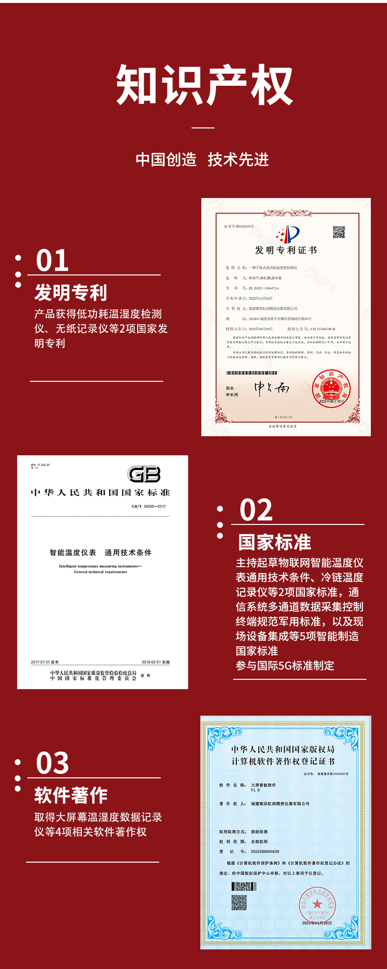 虹潤公司是專業(yè)生產(chǎn)環(huán)境監(jiān)測儀表的國家專精特新“小巨人”企業(yè)。生產(chǎn)的大屏噪音溫濕度記錄儀,具有高清大屏顯示,數(shù)據(jù)記錄與轉(zhuǎn)存,同步觸發(fā)可靠預(yù)警,RS485或以太網(wǎng)通訊等特點(diǎn)。產(chǎn)品獲得一種手持式低功耗溫濕度檢測儀、無紙記錄儀等2項國家發(fā)明專利,主持起草物聯(lián)網(wǎng)智能溫度儀表通用技術(shù)條件、冷鏈溫度記錄儀等2項國家標(biāo)準(zhǔn),通信系統(tǒng)多通道數(shù)據(jù)采集控制終端規(guī)范軍用標(biāo)準(zhǔn),以及現(xiàn)場設(shè)備集成等5項智能制造國家標(biāo)準(zhǔn),參與國際5G標(biāo)準(zhǔn)制定,取得大屏幕溫濕度數(shù)據(jù)記錄儀等3項相關(guān)軟件著作權(quán)。產(chǎn)品廣泛應(yīng)用于電子制造、醫(yī)療科研、倉儲管理、畜牧養(yǎng)殖、建筑工程等諸多領(lǐng)域。