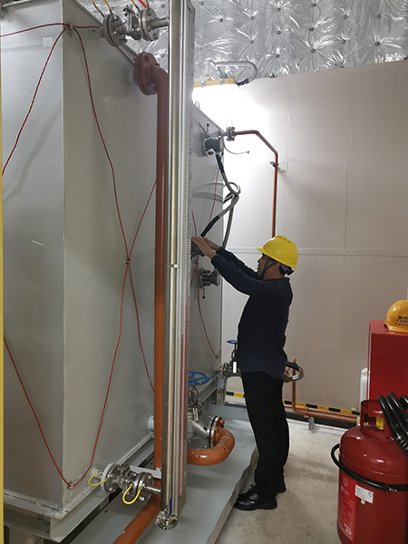 11月7日凌晨6點,東方剛露出魚肚白。孫利勤踏著晨露,帶著虹潤產(chǎn)品和測試安裝設(shè)備馬不停蹄來到了珠海港口,經(jīng)過2個多小時的海上跋涉,終于到了海上風電升壓站現(xiàn)場,對于客戶提到的技術(shù)要求,孫利勤先是對現(xiàn)場環(huán)境進行測試和判斷,與客戶認真溝通制定了技術(shù)應(yīng)用方案,并于次日成功安裝。虹潤儀表現(xiàn)場表現(xiàn)良好,對海上升壓站TC690L柴油發(fā)電設(shè)備液位控制精度高且運行穩(wěn)定,得到了客戶的好評。解決了客戶的技術(shù)需求,虹潤人的心也放下了,這次跨越大海的技術(shù)服務(wù)終于不辱使命。