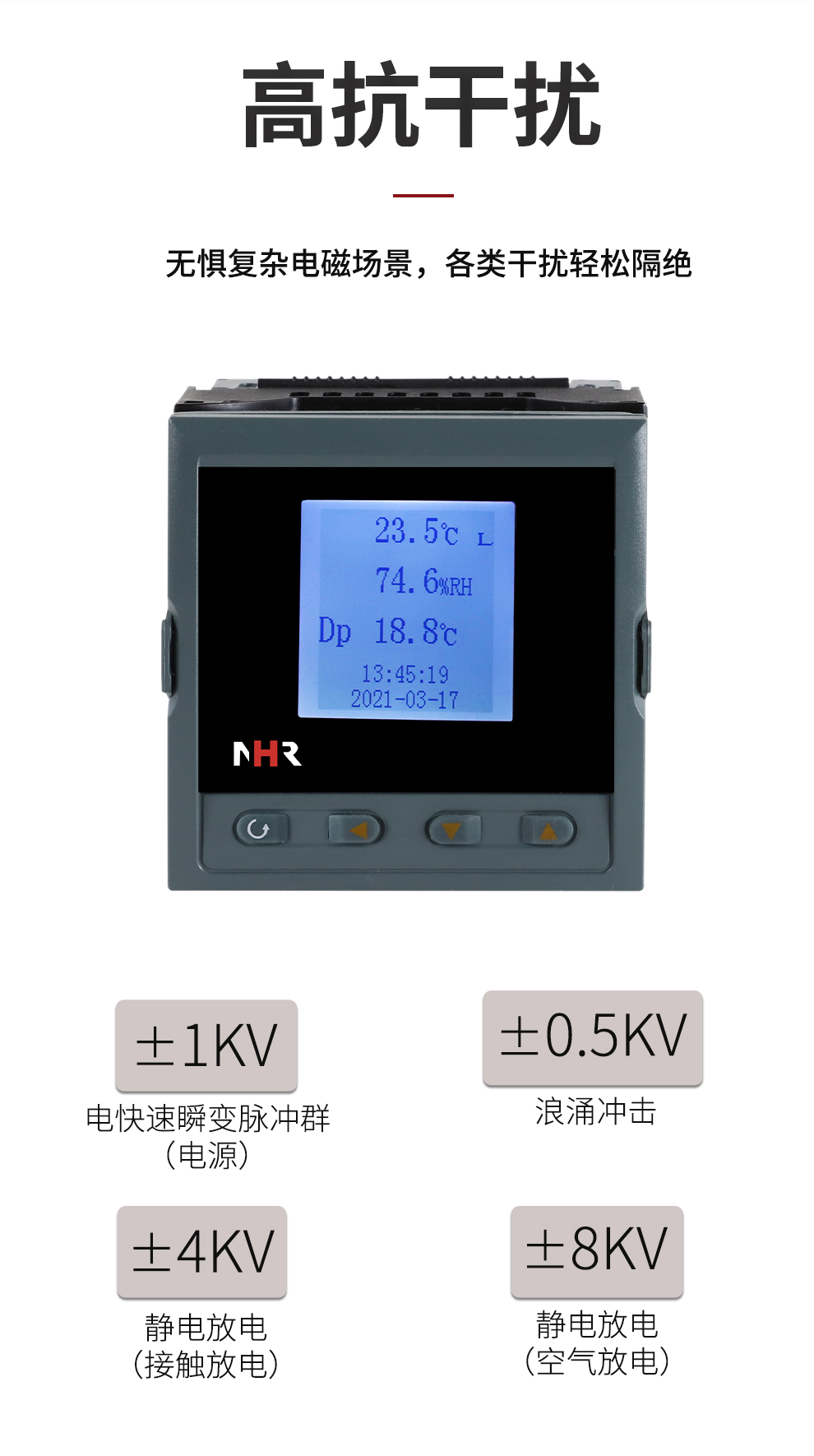 虹潤公司是專業(yè)生產(chǎn)環(huán)境監(jiān)測(cè)儀表的國家專精特新“小巨人”企業(yè)。生產(chǎn)的盤裝式溫濕度控制器,具有溫度、濕度、露點(diǎn)高精準(zhǔn)的測(cè)量,壁掛式結(jié)構(gòu),IP65防護(hù)穩(wěn)定性強(qiáng),高抗干擾,帶RS485/RS232通訊輸出等級(jí)等特點(diǎn)。產(chǎn)品獲得一種手持式低功耗溫濕度檢測(cè)儀、大屏幕溫濕度記錄儀等2項(xiàng)國家發(fā)明專利,主持起草物聯(lián)網(wǎng)智能溫度儀表通用技術(shù)條件、冷鏈溫度記錄儀等2項(xiàng)國家標(biāo)準(zhǔn),通信系統(tǒng)多通道數(shù)據(jù)采集控制終端規(guī)范軍用標(biāo)準(zhǔn),以及現(xiàn)場(chǎng)設(shè)備集成等5項(xiàng)智能制造國家標(biāo)準(zhǔn),參與國際5G標(biāo)準(zhǔn)制定,取得溫濕度儀表等2項(xiàng)相關(guān)軟件著作權(quán)。產(chǎn)品廣泛應(yīng)用于工業(yè)現(xiàn)場(chǎng)、農(nóng)業(yè)大棚、倉儲(chǔ)物流、地下管廊、養(yǎng)殖孵化、配電機(jī)房等諸多領(lǐng)域。