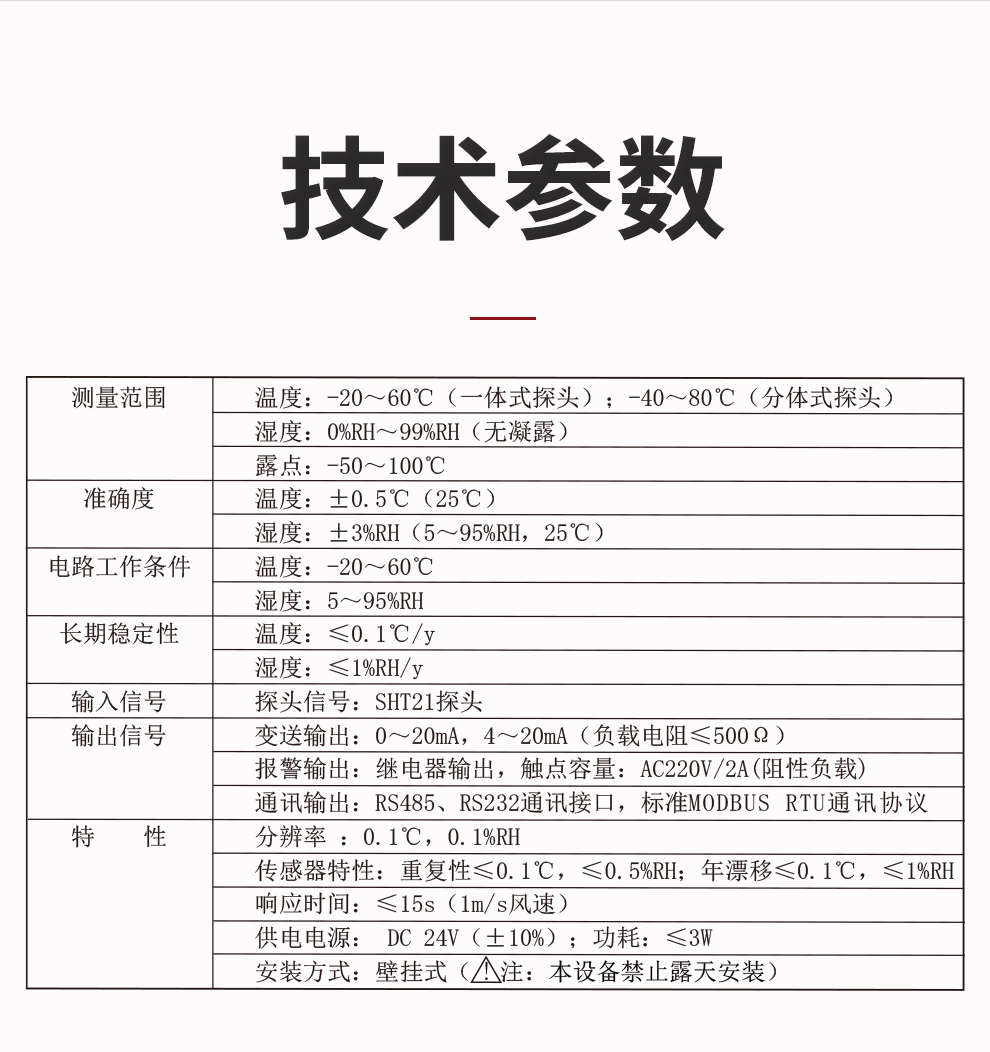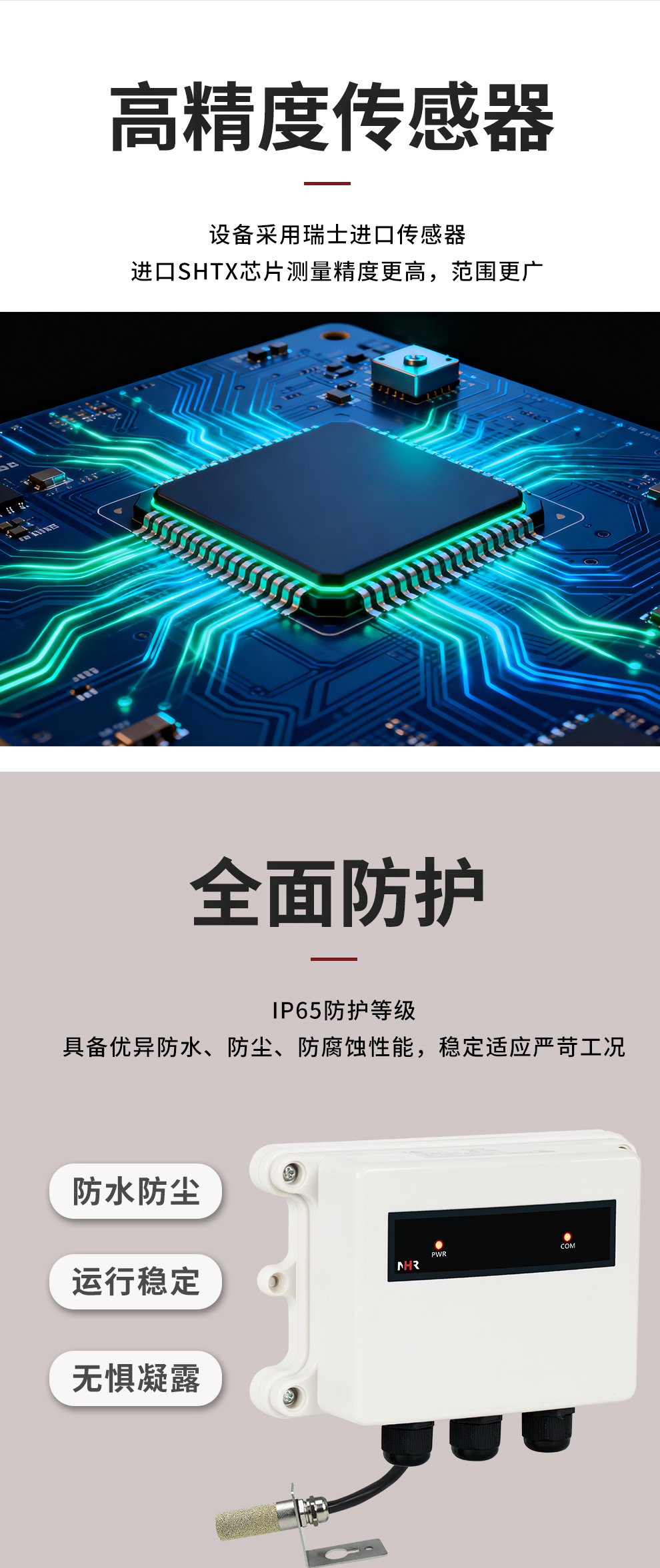 虹潤公司是專業(yè)生產(chǎn)環(huán)境監(jiān)測儀表的國家專精特新“小巨人”企業(yè)。生產(chǎn)的一體式溫濕度變送器,具有溫度、濕度、露點(diǎn)高精準(zhǔn)的測量與變送,報(bào)警繼電器輸出,RS485/RS232通訊,IP65防護(hù)等級等特點(diǎn)。產(chǎn)品獲得一種手持式低功耗溫濕度檢測儀、大屏幕溫濕度記錄儀等2項(xiàng)國家發(fā)明專利,主持起草物聯(lián)網(wǎng)智能溫度儀表通用技術(shù)條件、冷鏈溫度記錄儀等2項(xiàng)國家標(biāo)準(zhǔn),以及通信系統(tǒng)多通道數(shù)據(jù)采集控制終端規(guī)范軍用標(biāo)準(zhǔn),以及現(xiàn)場設(shè)備集成等5項(xiàng)智能制造國家標(biāo)準(zhǔn),參與國際5G標(biāo)準(zhǔn)制定,取得溫濕度儀表等3項(xiàng)相關(guān)軟件著作權(quán)。產(chǎn)品廣泛應(yīng)用于工業(yè)現(xiàn)場、農(nóng)業(yè)大棚、倉儲物流、地下管廊、養(yǎng)殖孵化、配電機(jī)房等諸多領(lǐng)域。