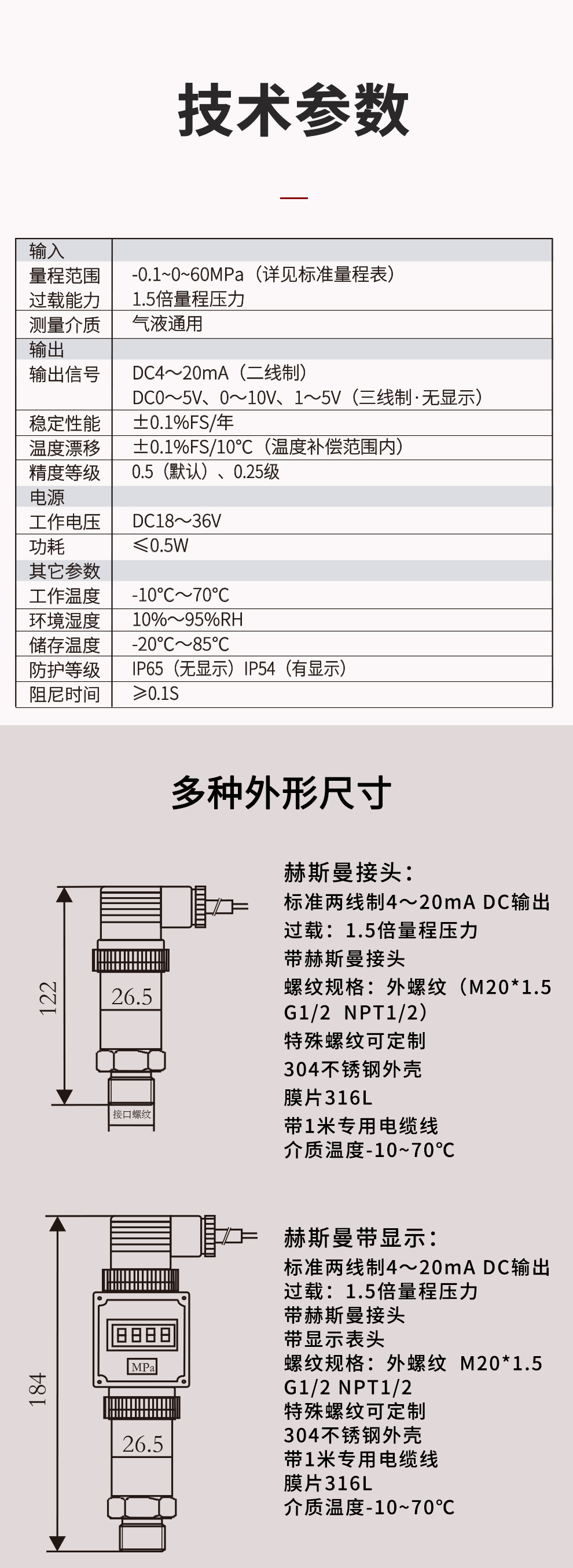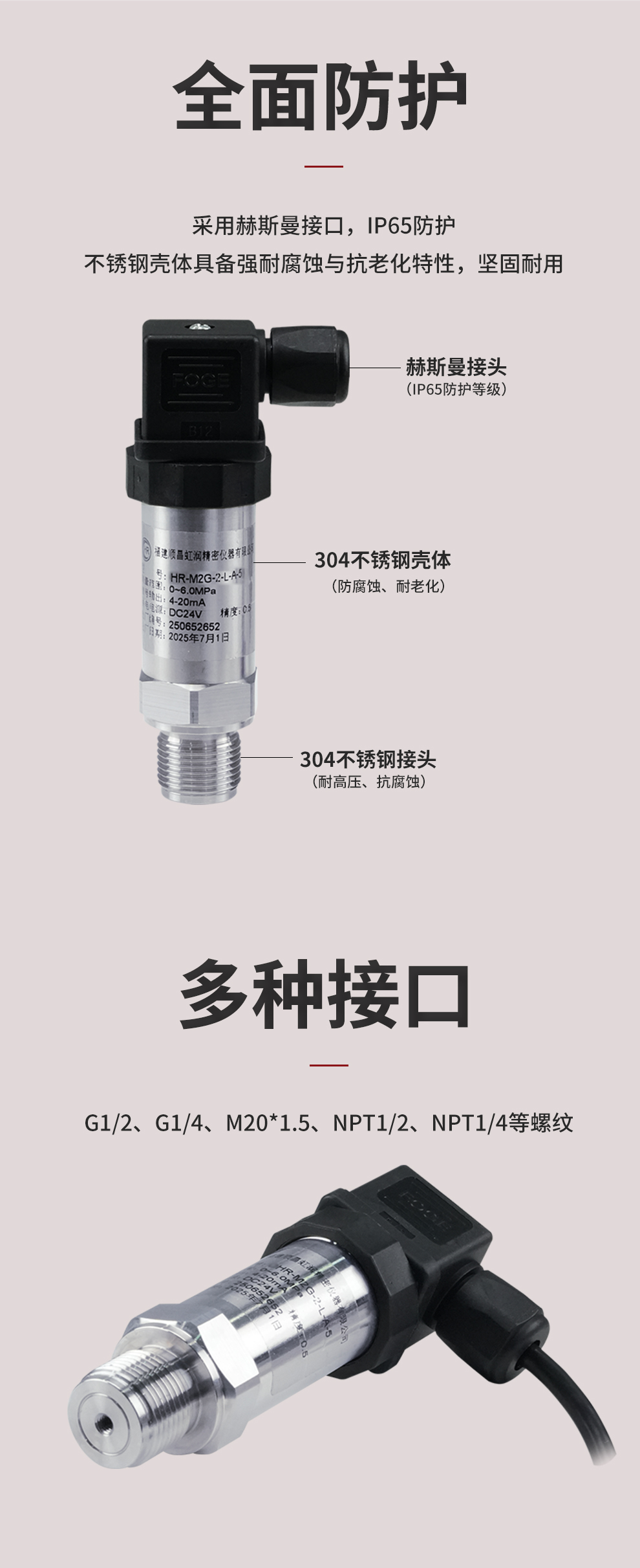 虹潤(rùn)公司是專業(yè)生產(chǎn)壓力變送器的國(guó)家專精特新“小巨人”企業(yè),生產(chǎn)的小巧型壓力變送器,具有采用進(jìn)口芯體,量程范圍寬,抗沖擊抗震動(dòng),多種螺紋接口,性能穩(wěn)定等特點(diǎn)。產(chǎn)品獲得一種數(shù)字顯示低功耗壓力表、一種信號(hào)發(fā)生器裝置等2項(xiàng)國(guó)家發(fā)明專利,主持起草工業(yè)過程控制系統(tǒng)用模擬輸入兩位或多位輸出儀表、工業(yè)過程測(cè)量和控制系統(tǒng)用壓力/差壓變送器等2項(xiàng)國(guó)家標(biāo)準(zhǔn),通信系統(tǒng)多通道數(shù)據(jù)采集控制終端規(guī)范軍用標(biāo)準(zhǔn),以及現(xiàn)場(chǎng)設(shè)備集成等5項(xiàng)智能制造國(guó)家標(biāo)準(zhǔn),參與國(guó)際5G標(biāo)準(zhǔn)制定,取得數(shù)顯壓力表等2項(xiàng)相關(guān)軟件著作權(quán)。產(chǎn)品廣泛應(yīng)用于化工、食品、制藥、電力、設(shè)備配套、供暖、水處理、樓宇等行業(yè),需精準(zhǔn)測(cè)量流體壓力的現(xiàn)場(chǎng)。