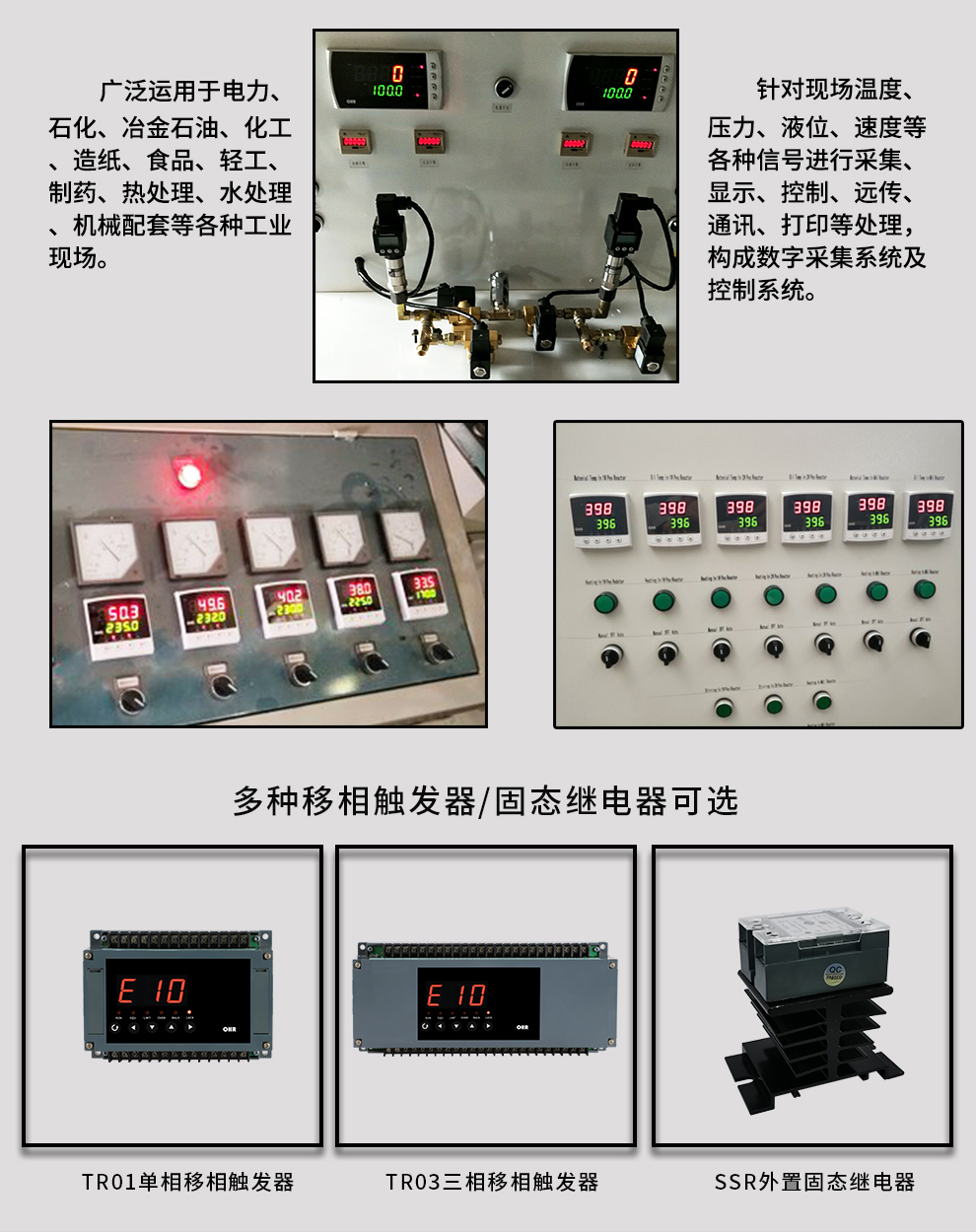 虹潤公司是專業(yè)生產(chǎn)移相觸發(fā)器的國家專精特新“小巨人”企業(yè),生產(chǎn)的移相觸發(fā)器,具有采用光電隔離設計,自動同步功能,過流保護技術,電源缺相檢測,信號超限報警等特點。產(chǎn)品獲得巡回檢測顯示方法及裝置、儀表殼體等2項國家發(fā)明專利,主持起草工業(yè)過程控制系統(tǒng)用模擬輸入兩位或多位輸出儀表、物聯(lián)網(wǎng)智能溫度儀表通用技術條件等2項國家標準以及通信系統(tǒng)多通道數(shù)據(jù)采集控制終端規(guī)范軍用標準,參與國際5G標準制定,取得外置移相觸發(fā)器等2項相關軟件著作權。產(chǎn)品廣泛應用于工業(yè)溫控、電極控制、航天軍工、電爐溫控、食品醫(yī)藥等諸多領域。
