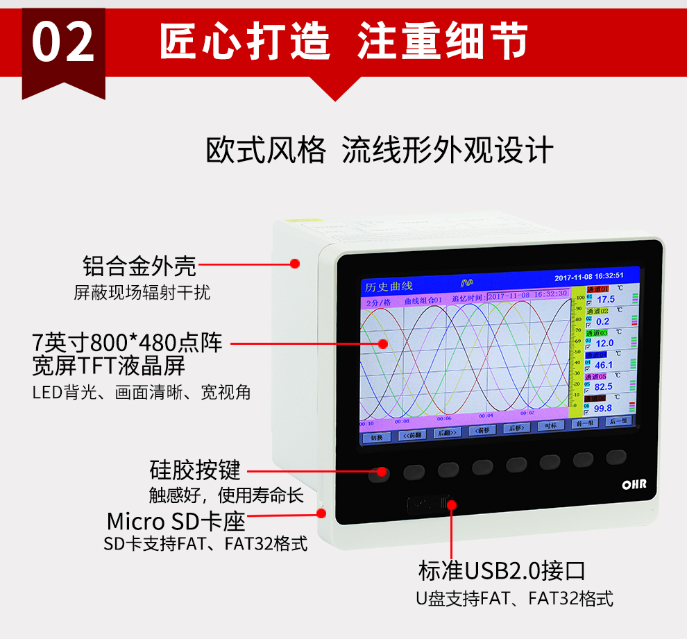 OHR-H700系列多路彩色數(shù)據(jù)采集無(wú)紙記錄儀