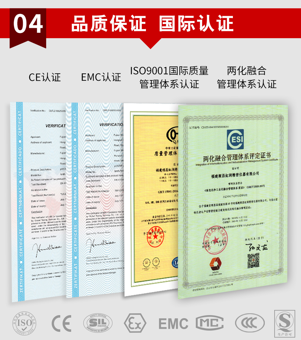 虹潤公司是專業(yè)生產(chǎn)水質(zhì)分析儀的國家專精特新“小巨人”企業(yè)。生產(chǎn)的pH/ORP控制器,具有模擬電極與數(shù)字電極切換輸入、測量精準穩(wěn)定不跳字,RS485/以太網(wǎng)通訊,配套上位機管理軟件等特點。產(chǎn)品獲得一種適應(yīng)性強PH控制儀、一種平板無紙記錄儀、智能化控制器等3項國家發(fā)明專利;主持起草物聯(lián)網(wǎng)智能記錄儀表通用技術(shù)條件、現(xiàn)場設(shè)備工具(FDT)接口規(guī)范、過程分析技術(shù)系統(tǒng)等3項國家標準,以及通信系統(tǒng)多通道數(shù)據(jù)采集控制終端規(guī)范軍用標準,參與國際5G標準制定,取得PH無紙記錄儀等4項相關(guān)軟件著作權(quán)。產(chǎn)品廣泛應(yīng)用于實驗室、水處理、環(huán)境監(jiān)測、食品、制藥、農(nóng)業(yè)、工業(yè)流程控制等諸多領(lǐng)域。