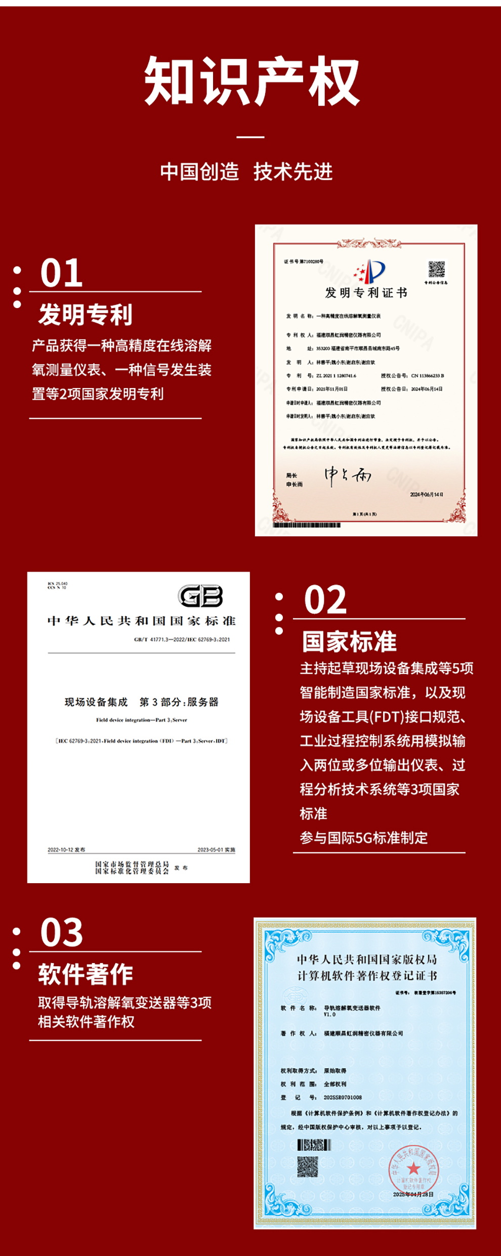 虹潤公司是專業(yè)生產(chǎn)水質(zhì)分析儀的國家專精特新“小巨人”企業(yè)。生產(chǎn)的導軌式溶解氧變送器,具有測量穩(wěn)定不跳字,液晶按鍵操控,變送輸出精準,寬范圍電源供電,RS485或HART通訊等特點。產(chǎn)品獲得一種高精度在線溶解氧測量儀表、智能化控制器、一種信號發(fā)生裝置等3項國家發(fā)明專利;主持起草現(xiàn)場設備集成等5項智能制造國家標準,以及現(xiàn)場設備工具(FDT)接口規(guī)范、工業(yè)過程控制系統(tǒng)用模擬輸入兩位或多位輸出儀表、過程分析技術系統(tǒng)等3項國家標準;參與國際5G標準制定,取得導軌溶解氧變送器等3項相關軟件著作權。產(chǎn)品廣泛應用于實驗室、水處理、環(huán)境監(jiān)測、制藥、食品、農(nóng)業(yè)、工業(yè)流程控制等諸多領域。