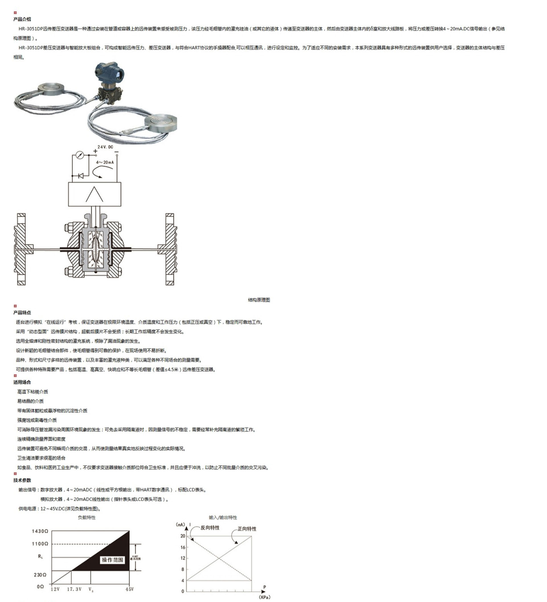 HR-3051DP遠(yuǎn)傳差壓變送器
