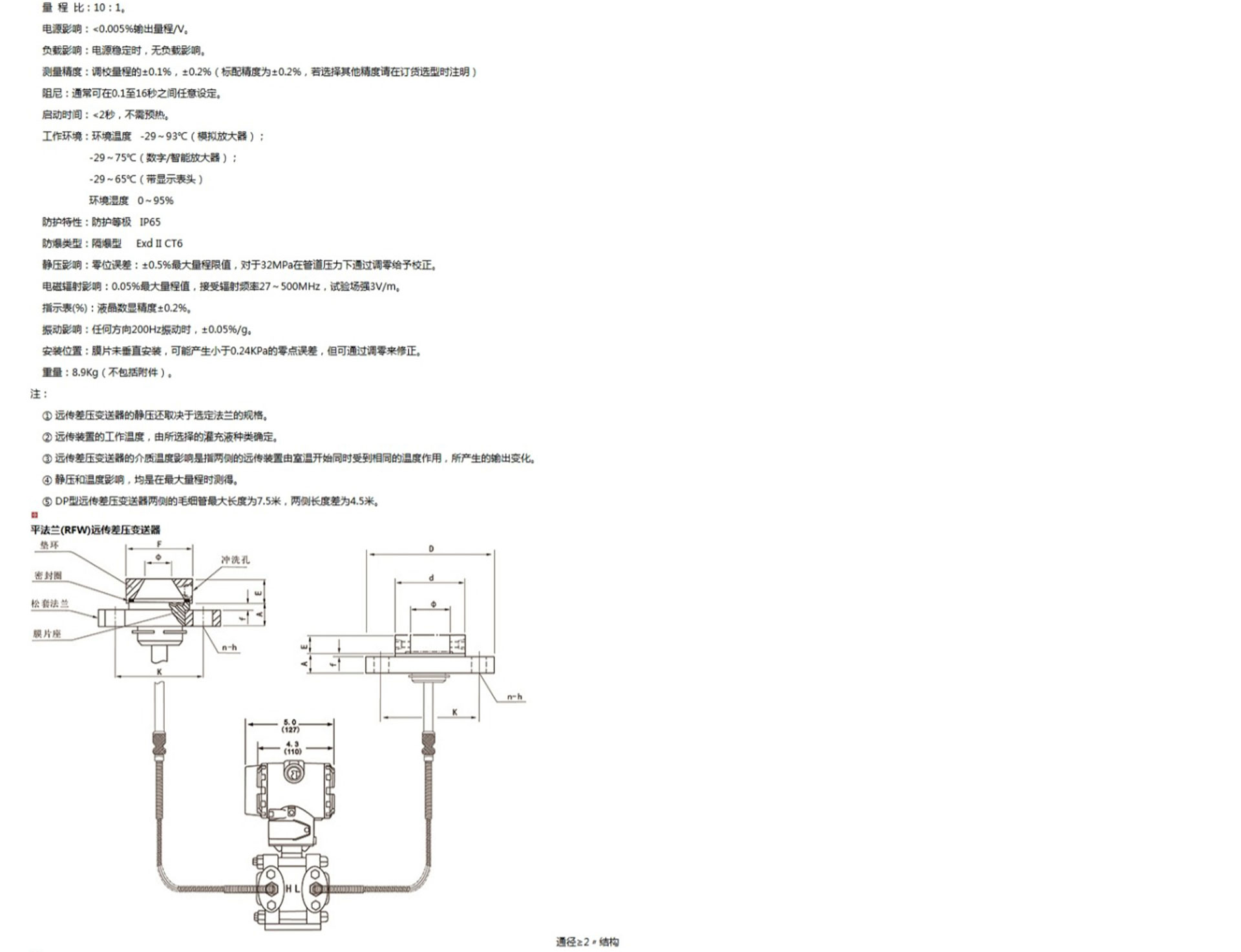 HR-3051DP遠(yuǎn)傳差壓變送器是一種通過(guò)安裝在管道或容器上的遠(yuǎn)傳裝置來(lái)感受被測(cè)壓力,該壓力經(jīng)毛細(xì)管內(nèi)的灌充硅油(或其它的液體)傳遞至變送器的主體,然后由變送器主體內(nèi)的δ室和放大線路板,將壓力或差壓轉(zhuǎn)換4~20mA.DC信號(hào)輸出。