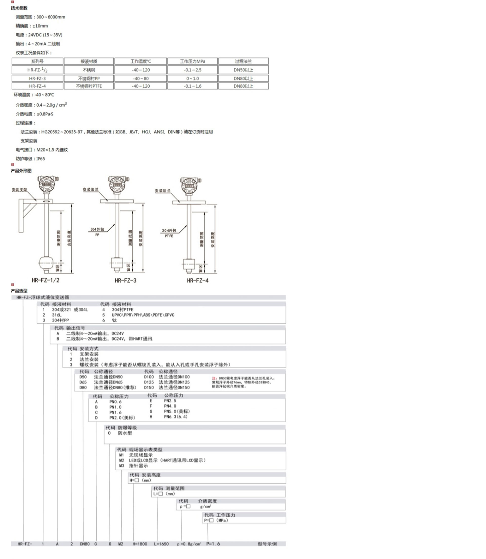 HR-FZ系列浮球式液位變送器